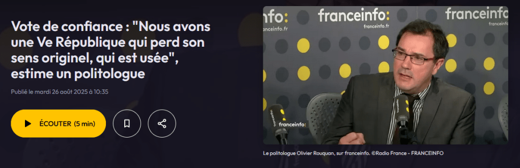 La chute du gouvernement Bayrou, officialisée par l’échec prévisible du vote de confiance, marque un nouveau tournant dans la crise politique qui secoue la France depuis plus d’un an. Quatre Premiers ministres en 20 mois : jamais la Vème République n’avait connu pareille valse à Matignon. Mais la chute de François Bayrou n’est pas seulement un épisode de plus dans la chronique du désordre : elle ouvre une période d’incertitude extrême.