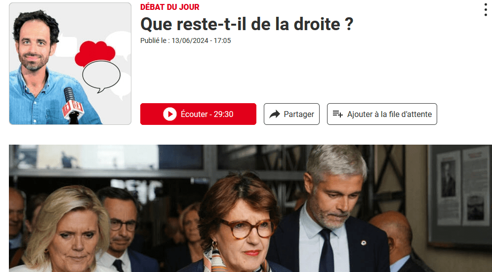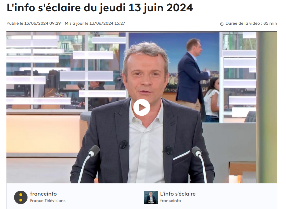 Publié le 14 juin 20247 juillet 2024 par Olivier Rouquan LR [ affrontements mortifères ] vs Gauche [ Front populaire] Matinale, 14 juin 2024, 7h10 @rfi, 13 juin 2024 Écoutez l’émission @franceinfo TV, 13 juin 2024 Regardez l’émission
