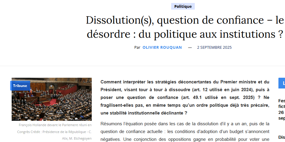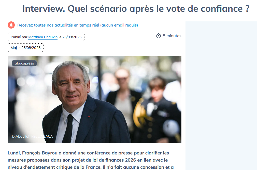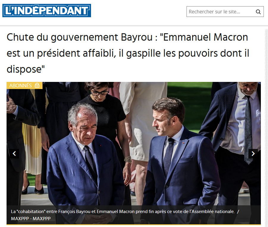 La chute du gouvernement Bayrou, officialisée par l’échec prévisible du vote de confiance, marque un nouveau tournant dans la crise politique qui secoue la France depuis plus d’un an. Quatre Premiers ministres en 20 mois : jamais la Vème République n’avait connu pareille valse à Matignon. Mais la chute de François Bayrou n’est pas seulement un épisode de plus dans la chronique du désordre : elle ouvre une période d’incertitude extrême.