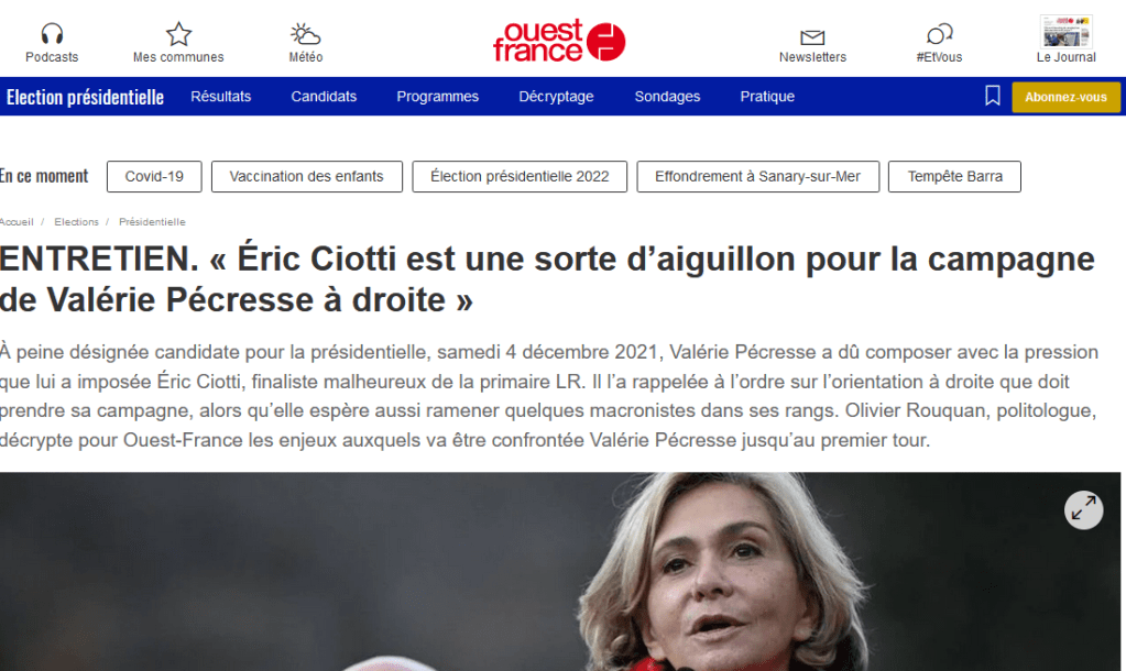 Publié le 7 décembre 20217 décembre 2021 par Olivier Rouquan #Pécresse, la patronne ? Ouest France, 07 dec. 2021 lire l’entretien