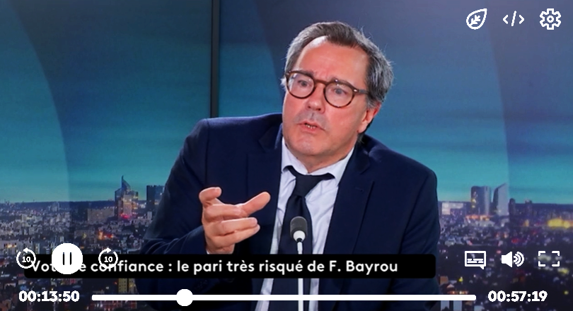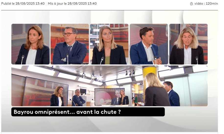 Publié le 26 août 202529 août 2025 par Olivier Rouquan La situation après l’annonce du vote de confiance FranceInfoTV, 25 août 2025, 23h Regardez l’émission